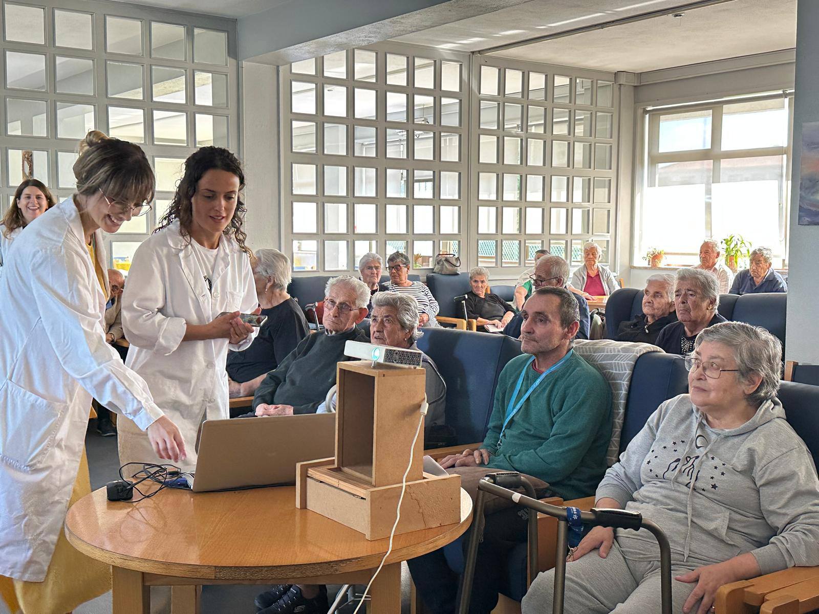 Duas enfermeiras muito simpáticas da Unidade Local de Saúde do Tâmega e Sousa, do serviço de ortopedia, enfermeiras Raquel e Sara, estiveram no Centro Social e Paroquial de Freamunde a realizar uma ação de formação dedicada à prevenção de quedas em pessoas idosas.