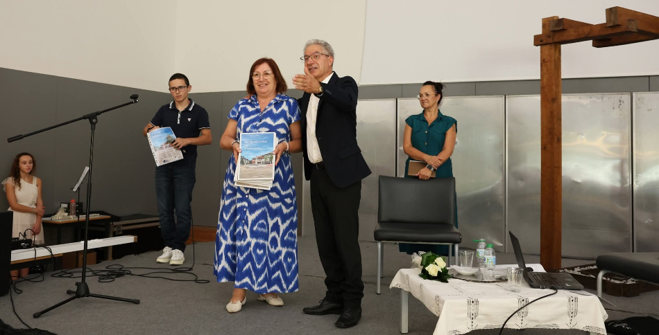 Um dos momentos altos foi a entrega de exemplares do livro à subdiretora, professora Lurdes Fonseca, gesto que simbolizou a partilha do trabalho com toda a Comunidade Educativa.