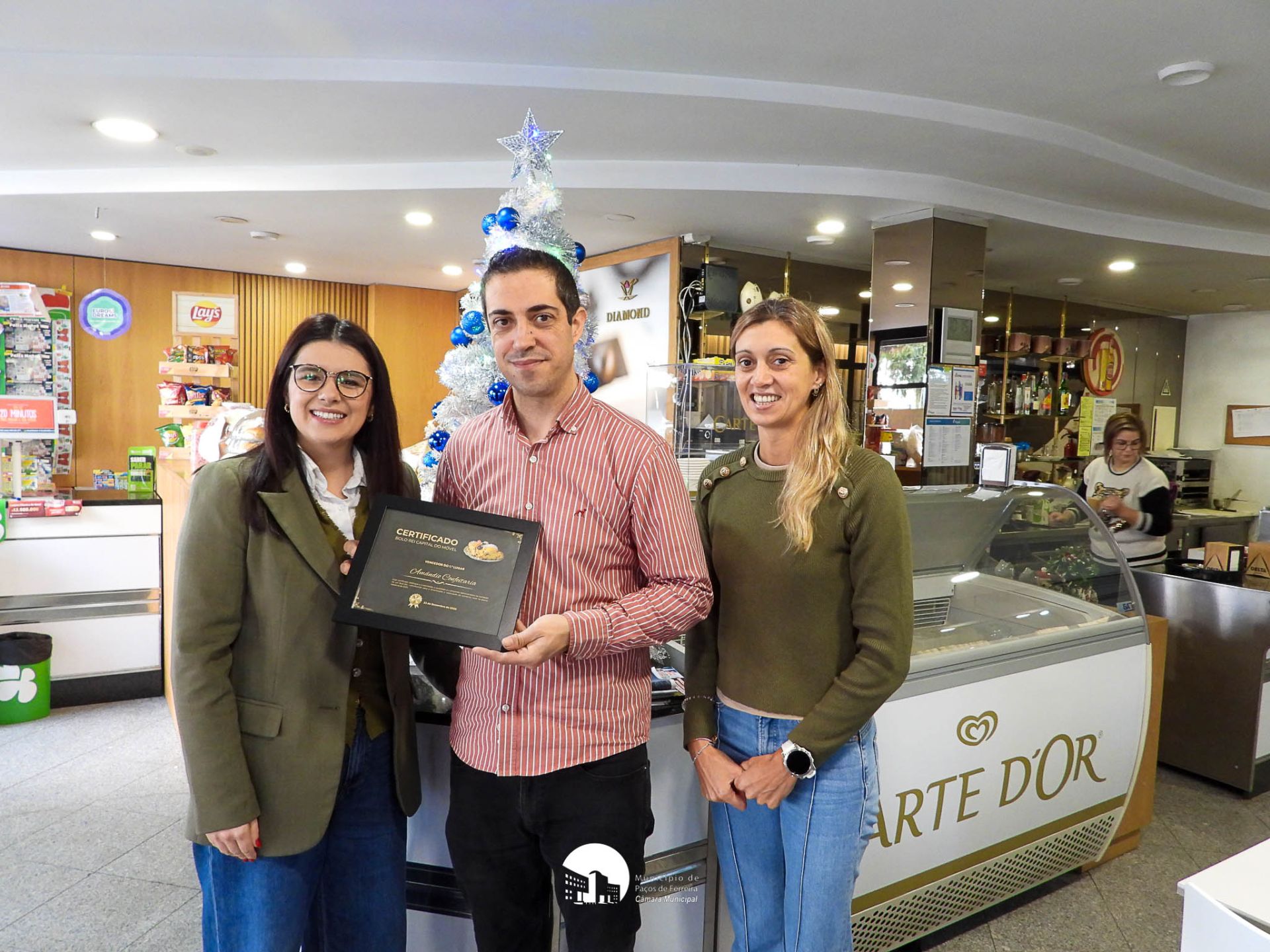 A vereadora Andreia Nunes e a diretora-geral executiva da Associação Empresarial de Paços de Ferreira, Filipa Belo, entregaram o certificado aos premiados do Concurso do Melhor Bolo-Rei 2026.